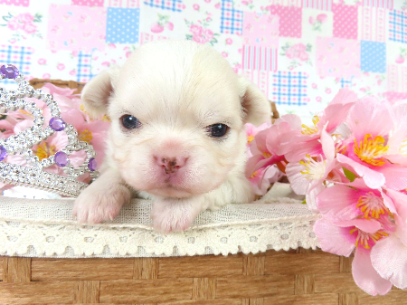 写真を見て一目惚れしました。 遠方からのお迎えでしたが、オンライン見学など早く丁寧な対応をしていただきました。 お迎えに行ったときの説明もわかりやすく、この子をお迎えできて本当に感謝しています!!