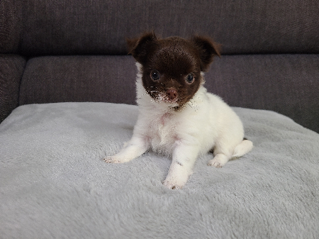 4兄妹のうちのイザベラ&タンの女の子(ミルフィーユちゃん) お残ししていましたがサイズが小さいためママ犬になるのを断念しました。 初回ワクチン、マイクロチップ込みの価格になります。 この子は見学当日にお迎え可能です。 当日にお迎えの場合には準備して頂くものが在りますのでお尋ねください。 大切に育てていただける優しいオーナー様募集しております。 ご見学も大歓迎ですのでお気軽にお問い合わせくださいませ。 9月16日(生後39日目)動物病院にて健康診断を受診してきました。 ・泉門 上ペコ小(成長とともに無くなります) ・デベソ 小(日常生活に問題ありません) 他は欠点はありませんので健康体です。 ・6種ワクチン接種済 ・マイクロチップ装着済 ・狂犬病ワクチン接種済 12月8日 自身で確認 ・かみ合わせ アンダーショットぎみ 2024年1月4日体重測定1350g 以下お迎え時にお渡しするもの ・マイクロチップ登録証明書 ・ワクチン接種証明書 ・健康診断書 ・両親の遺伝子検査報告書 ・現在与えているフード ・販売説明同意書 ・血統書 ・領収書 ・出生証明書(写し) ・生後からの写真データ(USBメモリ等の媒体でお渡し) ・狂犬病予防注射済証