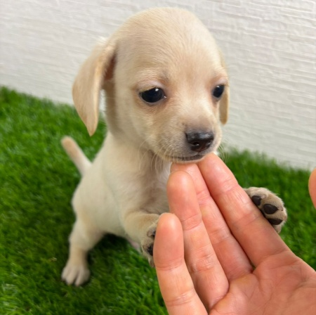 遊ぶの大好きなチワプーの女の子です🐕️ 体重910g(2/11) 画像撮影日2024/2/11 母犬:トイプードル体重約4.6kg 毛色ホワイト 父犬:チワワ(スムース)体重約4kg 毛色ブラックタン