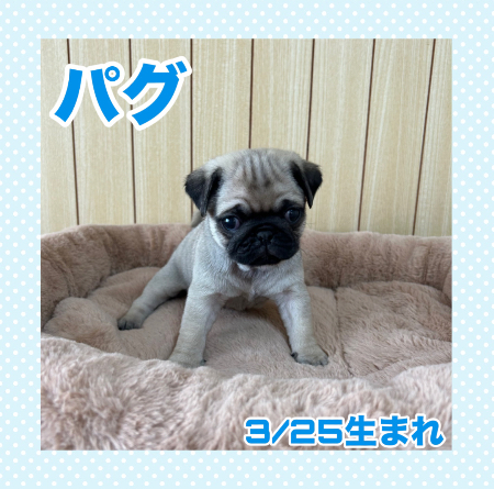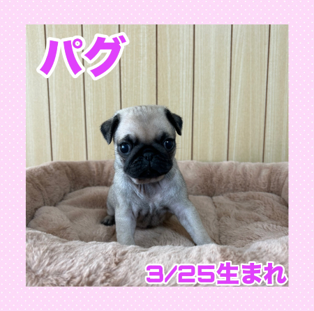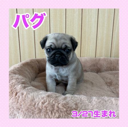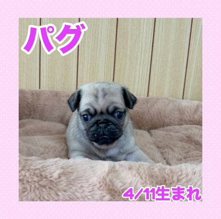 ご覧頂きありがとうございます! お母さん:パグ フォーン お父さん:パグ フォーン お母さんのミルクを飲み、すくすく成長しています!! 【お問い合わせ】 電話 090-3205-7591 メール wodansss1963@icloud.com 子犬の見学、気になることがございましたら、ご連絡下さい! 【お支払いについて】 表示している金額が総額になります。 価格には諸経費(接種済ワクチン代、消費税)などが含まれています。 ご質問などありましたら、お問い合わせ下さい!! 【当犬舎までのアクセス】 ●電車でお越しの方 南武線稲城長沼駅 徒歩15分 京王線稲城駅 徒歩8分 ●お車でお越しの方 稲城ICから6分 ぜひ可愛い子犬たちに会いに来てください! ご連絡お待ちしています!!