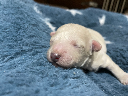 シルバーの両親から生まれたひとりっ子のホワイトくんです お母さんのおっぱいひとりじめしてムチムチに育っています これからお母さんや同居犬達に犬社会を教わりながら社交的な子に育つかと思います 両親いますので見学時には見る事ができます 是非見学にお越し下さい