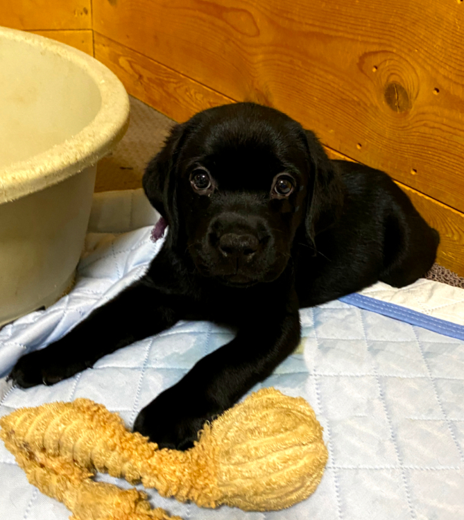 両親犬ともにイギリス輸入犬の直仔です。(在舎中) 英国血統のラブラドールらしく、穏やかで無駄鳴きせず賢い行動をする子犬です。健全な身体と人懐こさと言った気性を兼ね備えた「家庭犬」に自信をもってお勧めの個体であると存じます。
