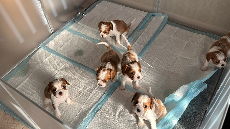 可愛い可愛いブレンハイムのキャバリア♡ 男の子2頭 女の子1頭 ご家族様募集中です。 リビングで常に目の届くところでのびのびと元気に過ごしています。 トイレトレーニングも順調で、ほぼおトイレでできます。 見学後気に入っていただければ一緒にお帰りいただく事も可能です。