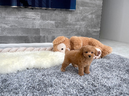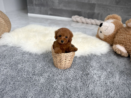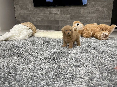 両親タイニーサイズ!小ぶりなドアーフの女の子です♡ お父さん 毛色:レッド 2.2kg お母さん 毛色:アプリコット 3.2kg 欠点 白毛 ヘルニア小 両親ともに遺伝子検査済み! 両親とも1歳時に関節(パテラチェック済み) 飼育後のお客様の心配を少しでも軽減できる様、しっかりと検査した健康的な両親の子犬です。 お迎え後の24時間飼育相談対応で初心者の方でも安心して飼育頂けます。 テレビ電話での見学も大歓迎です♬