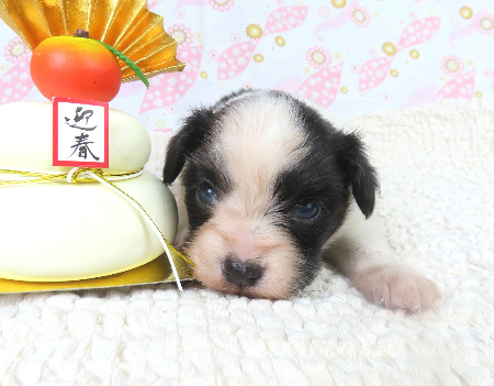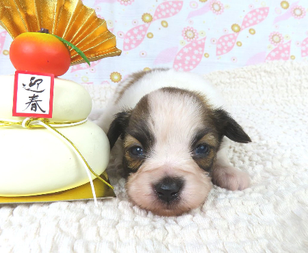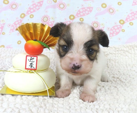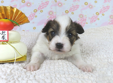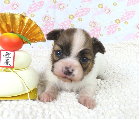 父 チョリソー 母 へカティ 現在モレラがありますが、チワワなので特に欠点とは考えておりません。 3/24現在の体重は2.58kgです。 混合ワクチン3回接種済み 子犬と親犬はブリーダー歴30数年、40数年の経験者と動物看護士などが中心に365日、注意深く、丁寧に観察してお世話をしております。 子犬ちゃんは人間同様、個人差がありますので、子犬ちゃんのお世話の仕方、お食事あげ方はご見学時、お迎え時などに担当のスタッフより詳しくお伝えいたしますのでなんでもご遠慮なくご相談ください。 JKCの全犬種審査員資格者と単犬種パピヨン審査員資格者が在舎しておりますので、パピヨンのスタンダードを熟知しております。 当犬舎はパピヨン一筋50年を超える日本で一番歴史のあるパピヨン専門犬舎です。 犬舎号と登録は1970.10/19です。 日本中の国産のパピヨンで当犬舎の血統が入っていない犬は存在しません。 血統書発行団体JKCより下記表彰を受けております。 JKC特別繁殖奨励賞第1位受賞 犬舎 JKCパピヨン犬種表彰受賞 犬舎 ご見学は大歓迎ですのでどうぞご連絡の上、おいでください。365日年中無休です。 2013年9月1日より「動物の愛護と管理に関する法律」の改正によって、「生体販売時の現物確認・対面販売」が義務規定となりましたので、最低一度は直接犬舎までご来舎いただかなくてはなりません。従いまして今までのようにネットで写真、動画をご覧になっただけではご購入ができなくなりました。これはすべてのブリーダー・ペットショップも例外がありませんので、ご理解、ご協力のほど御願い申し上げます。 手続きに時間がかるため海外への輸出はいたしません。 スタッフの取得資格 (社)JKC 全犬種審査員2名(社)JKC 単犬種パピヨン審査員1名 (国) 動物看護師統一認定機構 愛玩動物看護師国家資格取得(社)JKC スチュアート1名(社)JKC A級ハンドラー1名 (社)JKC C級ハンドラー1名(社)日本愛玩動物協会 愛玩動物飼養管理士2級3名 動物の愛護及び管理に関する法律による動物取扱責任者2名