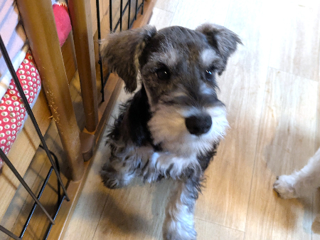 ワクチンを済ませて 子犬の状態を見てからになります。 60日前後です。 |