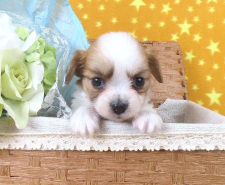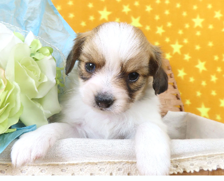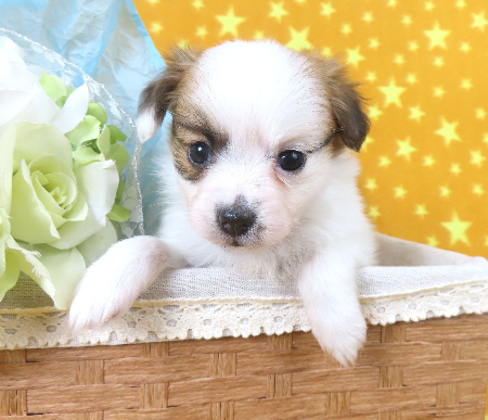 ※体重などの情報は後日掲載いたします。 子犬と親犬はブリーダー歴30数年、40数年の経験者と動物看護士などが中心に365日、注意深く、丁寧に観察してお世話をしております。 子犬ちゃんは人間同様、個人差がありますので、子犬ちゃんのお世話の仕方、お食事あげ方はご見学時、お迎え時などに担当のスタッフより詳しくお伝えいたしますのでなんでもご遠慮なくご相談ください。 JKCの全犬種審査員資格者と単犬種パピヨン審査員資格者が在舎しておりますので、パピヨンのスタンダードを熟知しております。 当犬舎はパピヨン一筋50年を超える日本で一番歴史のあるパピヨン専門犬舎です。 犬舎号と登録は1970.10/19です。 日本中の国産のパピヨンで当犬舎の血統が入っていない犬は存在しません。 血統書発行団体JKCより下記表彰を受けております。 JKC特別繁殖奨励賞第1位受賞 犬舎 JKCパピヨン犬種表彰受賞 犬舎 ご見学は大歓迎ですのでどうぞご連絡の上、おいでください。365日年中無休です。 2013年9月1日より「動物の愛護と管理に関する法律」の改正によって、「生体販売時の現物確認・対面販売」が義務規定となりましたので、最低一度は直接犬舎までご来舎いただかなくてはなりません。従いまして今までのようにネットで写真、動画をご覧になっただけではご購入ができなくなりました。これはすべてのブリーダー・ペットショップも例外がありませんので、ご理解、ご協力のほど御願い申し上げます。 手続きに時間がかるため海外への輸出はいたしません。 スタッフの取得資格 (社)JKC 全犬種審査員2名(社)JKC 単犬種パピヨン審査員1名 (国) 動物看護師統一認定機構 愛玩動物看護師国家資格取得(社)JKC スチュアート1名(社)JKC A級ハンドラー1名 (社)JKC C級ハンドラー1名(社)日本愛玩動物協会 愛玩動物飼養管理士2級3名 動物の愛護及び管理に関する法律による動物取扱責任者2名