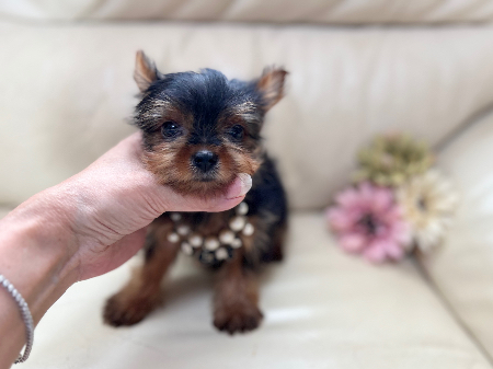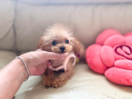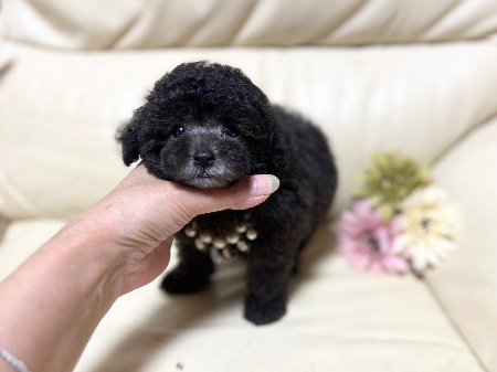 スペシャルの男の子の誕生ですܾ ܾ 𖥧𓇣𖦥𖥧𖥣 メチャメチャ可愛いティーカップサイズの男の子です ちょっと離れ目 垂れた大きなおメメのベビーフェイス 人気のドワーフタイプ♪♪ ストップが効いて どんなカットも似合いますよ𓂃𓈒໒꒱𓏸 成犬時の予想体重は 1.6~2kg こんなお顔で ウルウルと目を潤ませて「抱っこして~」 と、目で訴えかけてくるとメロメロになっちゃいますね 小さい子ですが、健康的な肉付きをしているので安心してお迎え頂けます 兄妹やお友達と一緒に過ごしながら社会性を身につけています トイレのトレーニングは離乳食と同時頃に徐々に覚えて、お引き渡し頃にほぼ出来ています お迎えいただいた後、少し戸惑い失敗してしまうかも知れませんが少しのトレーニングで覚えてくれますよ 現在犬舎で、元気に成長しています 可愛いのはもちろん明るく素直で甘えん坊です 繁殖不可 ※愛玩犬としてお迎え頂いておりますので、名義変更不可となります。また去勢避妊手術(生後1年以内)済の証明書の提出後のお渡しになります。