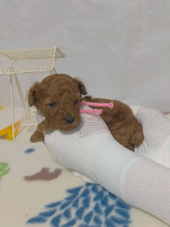 ティーカップのあんずちゃん初産です!オレンジリボンの女の子🧡美人さんにな〜れ😋 是非ご見学にいらして下さい。 可愛くて元気なチビ達のご確認と併せてお顔も可愛いパパとママもご確認下さい。大人になった時のお顔・サイズ感もご参考になると思います。 父犬 タイニーサイズのスカイちゃん 毛色:レッド 体高:26cm 体重:2.3kg 母犬 ティーカップサイズのあんずちゃん 毛色:レッド 体高:24cm 体重:1.9kg