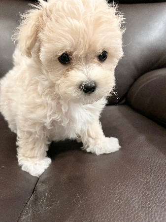 三姉妹の長女のあーちゃん❤️ ママ:トイプードル パパ:マルチーズ になりますっ☺️ 1番好奇心旺盛で、何事に積極的!! ほぼ、リビングフリーで過ごしており、トイレ成功率は、10回中7回と成功率は高いです! 小さい子とも大きい子とも、仲良く遊べるので多頭飼いも大丈夫ですっ😌