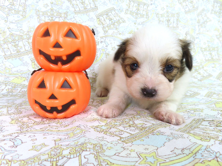 ※体重などの情報は後日掲載いたします。 10/26現在の体重は2.325kgです。 子犬と親犬はブリーダー歴30数年、40数年の経験者と動物看護士などが中心に365日、注意深く、丁寧に観察してお世話をしております。 子犬ちゃんは人間同様、個人差がありますので、子犬ちゃんのお世話の仕方、お食事あげ方はご見学時、お迎え時などに担当のスタッフより詳しくお伝えいたしますのでなんでもご遠慮なくご相談ください。 JKCの全犬種審査員資格者と単犬種パピヨン審査員資格者が在舎しておりますので、パピヨンのスタンダードを熟知しております。 当犬舎はパピヨン一筋50年を超える日本で一番歴史のあるパピヨン専門犬舎です。 犬舎号と登録は1970.10/19です。 日本中の国産のパピヨンで当犬舎の血統が入っていない犬は存在しません。 血統書発行団体JKCより下記表彰を受けております。 JKC特別繁殖奨励賞第1位受賞 犬舎 JKCパピヨン犬種表彰受賞 犬舎 ご見学は大歓迎ですのでどうぞご連絡の上、おいでください。365日年中無休です。 2013年9月1日より「動物の愛護と管理に関する法律」の改正によって、「生体販売時の現物確認・対面販売」が義務規定となりましたので、最低一度は直接犬舎までご来舎いただかなくてはなりません。従いまして今までのようにネットで写真、動画をご覧になっただけではご購入ができなくなりました。これはすべてのブリーダー・ペットショップも例外がありませんので、ご理解、ご協力のほど御願い申し上げます。 手続きに時間がかるため海外への輸出はいたしません。 スタッフの取得資格 (社)JKC 全犬種審査員2名(社)JKC 単犬種パピヨン審査員1名 (国) 動物看護師統一認定機構 愛玩動物看護師国家資格取得(社)JKC スチュアート1名(社)JKC A級ハンドラー1名 (社)JKC C級ハンドラー1名(社)日本愛玩動物協会 愛玩動物飼養管理士2級3名 動物の愛護及び管理に関する法律による動物取扱責任者2名