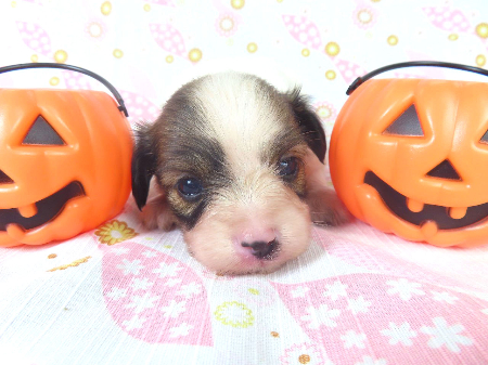 父 ニルギリ イギリスチャンピオンアークの血統 母 メリーズ イギリスチャンピオン&JKCチャンピオンユリシスの血統 成犬時の予想体重は2kg~2.5kgほどです。 小柄なワンちゃんをご希望の方にお勧めな子犬ちゃんです。 陰睾丸ですので去勢手術をすることをお勧めします。 9/2現在の体重は1.705kgです。 子犬と親犬はブリーダー歴30数年、40数年の経験者と動物看護士などが中心に365日、注意深く、丁寧に観察してお世話をしております。 子犬ちゃんは人間同様、個人差がありますので、子犬ちゃんのお世話の仕方、お食事あげ方はご見学時、お迎え時などに担当のスタッフより詳しくお伝えいたしますのでなんでもご遠慮なくご相談ください。 JKCの全犬種審査員資格者と単犬種パピヨン審査員資格者が在舎しておりますので、パピヨンのスタンダードを熟知しております。 当犬舎はパピヨン一筋50年を超える日本で一番歴史のあるパピヨン専門犬舎です。 犬舎号と登録は1970.10/19です。 日本中の国産のパピヨンで当犬舎の血統が入っていない犬は存在しません。 血統書発行団体JKCより下記表彰を受けております。 JKC特別繁殖奨励賞第1位受賞 犬舎 JKCパピヨン犬種表彰受賞 犬舎 ご見学は大歓迎ですのでどうぞご連絡の上、おいでください。365日年中無休です。 2013年9月1日より「動物の愛護と管理に関する法律」の改正によって、「生体販売時の現物確認・対面販売」が義務規定となりましたので、最低一度は直接犬舎までご来舎いただかなくてはなりません。従いまして今までのようにネットで写真、動画をご覧になっただけではご購入ができなくなりました。これはすべてのブリーダー・ペットショップも例外がありませんので、ご理解、ご協力のほど御願い申し上げます。 手続きに時間がかるため海外への輸出はいたしません。 スタッフの取得資格 (社)JKC 全犬種審査員2名(社)JKC 単犬種パピヨン審査員1名 (国) 動物看護師統一認定機構 愛玩動物看護師国家資格取得(社)JKC スチュアート1名(社)JKC A級ハンドラー1名 (社)JKC C級ハンドラー1名(社)日本愛玩動物協会 愛玩動物飼養管理士2級3名 動物の愛護及び管理に関する法律による動物取扱責任者2名