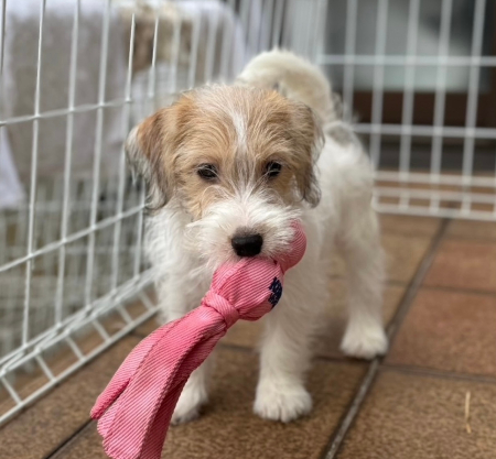 性格は、明朗活発 人懐っこい 父親JKCチャンピオン(輸入犬)、 両親とも優良血統。 毛質 ブロークン 同じ屋根の下、常に目が行き届くところで育てています。 少しオーバーバイト 繁殖不可。ブリーダーへの販売不可。