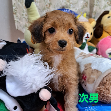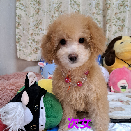 たくさんの仔犬の中から当犬舎の仔犬を見つけて頂きありがとうございます 一般的家庭で目の届く範囲でブリーディングしております 親犬達もリビングで自由に生活しております パパはタイニープードル(2.7キロ)レッド ママはトイプードルのホワイト 元気で優しい4兄妹の長男です 9月19日で1900g ママ似の可愛いい超甘えたの男の子です トイレもトレーで出来るようになってきました 直ぐにヘソ天する可愛い男の子 カリカリフードもいっぱい食べて成長中です(秒食) 兄妹でオモチャの取合いもしながらいっぱい遊んでます マイクロチップの挿入、第5種混合ワクチン2回は済みました ワクチン代金は2回分12000円頂戴します 健康診断も済みました パテラ、アンダー、ヘルニア無しです