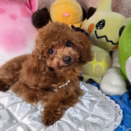 トイプードルの男の子をお迎えしました 見学に行って、お家に上がらせていただいた時に、少ない両親犬できっちりと管理されているのを見せていただき、とても安心しました また、写真を見て割と大きそうな感じがしたので、とりあえず見るだけにしようと決めて見学したのに、子犬にあってすぐに小さくてかわいいお顔が気に入ってしまいました 少しお話ししたらもう、心では連れて帰ると決まっていました 契約書を色々と説明していただき、マイクロチップの名義変更や、フードのプレゼントやおもちゃ、匂い付きの敷き毛布などを頂いて丁寧な気遣いに感動しました 書類もポケットファイルにちゃんと整理して渡され、すごいと思いました 帰りにはペットボトルのお茶までいただいて帰ってきました ワンちゃんも帰り道はおとなしく膝の上で寝てくれて、スムーズに家に帰りつきました かわいいワンちゃんをお迎えさせていただいてありがとうございました 大切に育てて行きたいと思います