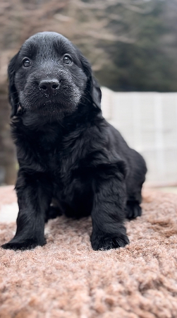 父:外産輸入犬(北欧英国血統) 母:外産輸入犬直子(北欧英国血統) 両親、祖父母、曽祖父母はフラットコーテッドに多いとされる遺伝性疾患の検査を受け全頭クリアしております。 子犬は骨量/毛量豊富、素直で表情豊か、とても愛くるしい男の子です。 獣医の健康チェック後にお引渡しします。 また、初めてフラットコーテッドを迎える方へお引渡し後の飼育に関する相談は子犬の生涯に渡りお引き受けしておりますのでご安心下さい。 獣医健康チェック、マイクロチップ、その他パピーセット代金込み。 表示価格のみ、それ以外の追加費用は一切かかりません。 一般家庭のみ譲渡します。 ※繁殖業者或いは同類の方へはお譲りしません。 また、屋外飼育や係留飼育の方もご遠慮頂いております。