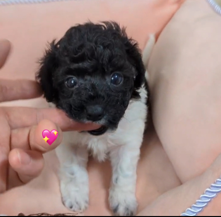 からし(仮名)君に目を止めて頂き ありがとうございます。 レアカラー🩷パーティープードル男の子 かわいいドアーフ君🤭 お色はホワイト&ブラック 11/2日体高12cm〜ティーカップサイズ変更 とても②可愛い〜お鼻の短いかわいいお顔です。 童顔のお父さんキムチ似 お母さんひめ子〜大きなお目目に短いお鼻💘万年ベビー顔🤭 ⭐️尻尾、断尾してませんので〜長いです とても活発 天然君のお父さんキムチ〜ドアーフタイプ マイペースでちょ〜甘えん坊のお母さんひめ子〜スクエアタイプ とても大事に育てています。 ひめ子の子はみんな😆お鼻の短い可愛いお顔の子たちばかり,なのでからし君も、とても可愛くなります❣️ 坦々君 美人ママに守られ😂元気に成長中 目が空いたばかりなので これから可愛くなります どうぞ宜しくお願い致します。 誠に申し訳ございません 独身、単身者、60歳以上の方へのお譲りはしておりません🙇♂️が 家族構成によってはお譲り可能な場合もございます。ご相談下さい🙇 遠方の場合は お住まいのお近くのブリーダーさんを介しての お渡しが可能の地域もございます。ご相談下さい。 お問い合わせ お待ち致しております🙇♀️ ⭐️ご家族でよくお話し合い、同居のご家族様の同意を得てからお問い合わせください🙇 ⭐️ご購入の意思がない、子犬に触りたいと見学のみの方は、申し訳ございませんがご遠慮ください 🙇♀️ 宜しくお願い致します🙇🏽♂️
