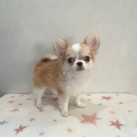 ♡*:.。. 沢山の子犬の中よりご閲覧ありがとうございます.。.:*♡ ※お問い合わせが集中した場合は、見学予約優先とさせて頂いてます。 フード…ドライフード 欠点… 尻先に曲がりあり(生活に支障無し) 躾…サークル内のトイレトレーニング済 パパ…ロング(ブラックタン.ホワイト)2.3kg JKCチャンピオン直子AMチャンピオン孫 ママ…ロング(フォーン)1.9kg JKCチャンピオン孫 小さな可愛いロングの女の子(仮)チャーミーちゃんのご紹介です。 3頭姉弟で産まれ、1番小さな長女で様子見で募集がゆっくりになりましたが、その分愛情いっぱいに育った甘えたさんです😊 元気に尻尾フリフリする姿がとても愛くるしいです💕 一般の方の繁殖不可の為、ペットとしてお迎え頂ける方。 生活に支障ありませんが、欠点があるため通常よりお迎えしやすい価格設定にしています。 姉弟の中でも1番小さく成長し成犬時、この子は2kg前後の小ぶり予想になります。 ご購入時に必要な金額:生体価格+ワクチン代 価格 ¥200,000(税抜) ¥220,000(税込)+ (ワクチン代 ¥19,150) マイクロチップ無料 合計 ¥239,150(税込) 🌿ご予約時現金でのお支払いの場合 (生体価格5%OFF) ¥209,000+ワクチン代 合計 ¥228,150(税込) 💐ご見学は10:30〜16:00までの少人数での事前予約制と致します。 💐当方ペットショップでは無い為、お迎え意思の無い方、ご家族全員の同意を得ていない方はご遠慮下さい。 💐ペット飼育可の物件にお住まいの方のみ。 当方のクオリティへのこだわりはもちろん、健康面にも配慮しながら、大切に育てた我が家の子犬達を是非、ご家族に♪ *当店よりお願い* 生後4ヶ月以降、ワクチン2回接種済の子犬はお外で遊べ5月よりノミ・ダニ、フィラリア予防の季節です。 命を守るため動物病院を受診して処方して頂きましょう。 ★アフターフォロー…いつでもLINEやメールでアドバイスします♪ その他、フード割引クーポンなど特典付き。 ★ペット医療保険代理店です。もしもの事を考えてお客様のご相談・ご提案させて頂きます。 全国の動物病院で利用可能