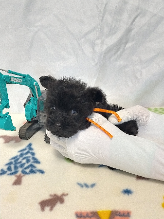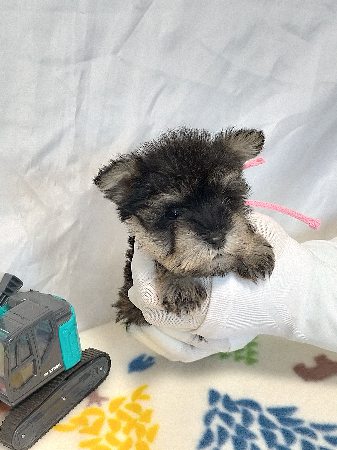 ティーカップシュナウザー産まれました! チビっちゃすぎるモモちゃん3回目の出産です! チビクロ3兄妹😍オールブラックス見参! 白リボンの女の子🤍しっかり美人さん! 父犬:別ブーリーダーさん所有のブラック&シルバー5.5kg 遺伝子検査:DM変性性脊髄症 クリア 第Ⅶ因子欠乏症 クリア 母犬:モモちゃん 毛色:ブラック&シルバー 体高:24cm 体重:2.9kg