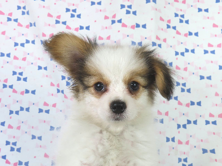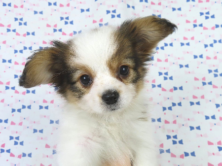 父 ルッコラ イギリスチャンピオンアークの血統 母 エディット インターナショナルチャンピオンコンノアの血統 アウトラインブリード 成長時の予想体重は3~4.キロ 11/29現在の体重は1.185kgです。 子犬と親犬はブリーダー歴30数年、40数年の経験者と動物看護士などが中心に365日、注意深く、丁寧に観察してお世話をしております。 子犬ちゃんは人間同様、個人差がありますので、子犬ちゃんのお世話の仕方、お食事あげ方はご見学時、お迎え時などに担当のスタッフより詳しくお伝えいたしますのでなんでもご遠慮なくご相談ください。 JKCの全犬種審査員資格者と単犬種パピヨン審査員資格者が在舎しておりますので、パピヨンのスタンダードを熟知しております。 当犬舎はパピヨン一筋50年を超える日本で一番歴史のあるパピヨン専門犬舎です。 犬舎号と登録は1970.10/19です。 日本中の国産のパピヨンで当犬舎の血統が入っていない犬は存在しません。 血統書発行団体JKCより下記表彰を受けております。 JKC特別繁殖奨励賞第1位受賞 犬舎 JKCパピヨン犬種表彰受賞 犬舎 ご見学は大歓迎ですのでどうぞご連絡の上、おいでください。365日年中無休です。 2013年9月1日より「動物の愛護と管理に関する法律」の改正によって、「生体販売時の現物確認・対面販売」が義務規定となりましたので、最低一度は直接犬舎までご来舎いただかなくてはなりません。従いまして今までのようにネットで写真、動画をご覧になっただけではご購入ができなくなりました。これはすべてのブリーダー・ペットショップも例外がありませんので、ご理解、ご協力のほど御願い申し上げます。 手続きに時間がかるため海外への輸出はいたしません。 スタッフの取得資格 (社)JKC 全犬種審査員2名(社)JKC 単犬種パピヨン審査員1名 (国) 動物看護師統一認定機構 愛玩動物看護師国家資格取得(社)JKC スチュアート1名(社)JKC A級ハンドラー1名 (社)JKC C級ハンドラー1名(社)日本愛玩動物協会 愛玩動物飼養管理士2級3名 動物の愛護及び管理に関する法律による動物取扱責任者2名