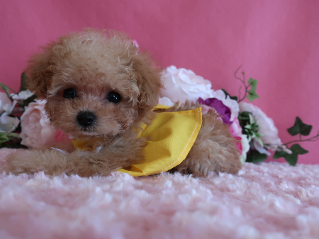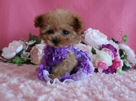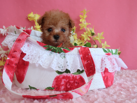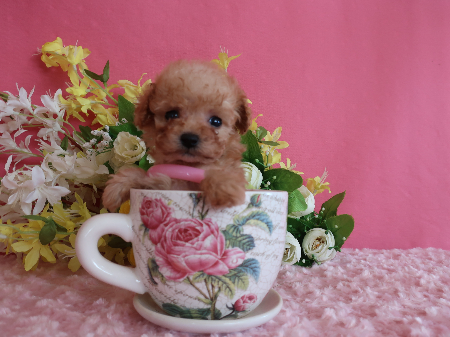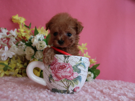 この可愛さはたまらない! 10月28日写真更新しました。 お顔立ちにこだわった両親から誕生しました。 ママはティーカップですが小さな体から5姉弟! まさにミラクルです。 5姉弟共におメメクリクリの丸顔でマイクロティー予想です 8月29日生れの男の子・毛色・レッド 10月18日 6種ワクチン、健康チェック 検便・マイクロチップ装置しました 断尾・狼爪も処置済みです。 10月18日 生後50日で348g 成犬時はマイクロティーカップ予想です。 性格は人懐こく甘えん坊ちゃんで人懐こく無駄泣き有りません。 ご飯もしっかり食べます。 両親情報 ママ クリーム 1.65㎏ パパ アプリ 2.0㎏ ワンちゃんにお付けするものとして ★ ワクチン証明(1回)・マイクロチップ(ブリーダーの義務として無料でお付けしています) ★ 血統書(完成)子犬ちゃんと一緒にお渡しします。 ★ フード(ロイヤルカナン) ★ フード皿 ★ お洋服1枚 ★ かご お迎えや空輸にも対応できます ★ 母子手帳など ※ お寒い時期に向けてペット用ホットカーペットをお付けしています。 フード量やワクチンの受け方につきましてはプリントしてお渡ししています。 ※ お引渡しは生後57日から子犬の状態にもよります。 お引渡し日が決まりましたら事前にトリミングを済ませてフアモコにしてお渡します。 ※ 遠方の方は現地での対面確認となりましたのでご了承ください。 対面後は空輸も可能です。空輸代は別にかかります。 ※ 仔犬ちゃんの他にかかる費用はございません。 ※ メールのやり取り・お話合い中でもほかの方に購入意思(ご予約代・手付代)をいただいた場合はその方に決まります。 実物の方が小さくて可愛いです。 県内・市内・お近くの方は是非!実物をご覧ください。 ご縁がありましたら宜しくお願い致します。