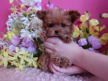 この可愛さはたまらない! 10月28日写真更新しました。 お顔立ちにこだわった両親から誕生しました。 ママはティーカップですが小さな体から5姉弟! まさにミラクルです。 5姉弟共におメメクリクリの丸顔でマイクロティー予想です 8月29日生れの女の子・毛色・クリーム 10月18日 6種ワクチン、健康チェック 検便・マイクロチップ装置しました 断尾・狼爪も処置済みです。 10月18日 生後50日で348g 成犬時はマイクロティーカップ予想です。 性格は人懐こく甘えん坊ちゃんで人懐こく無駄泣き有りません。 ご飯もしっかり食べます。 両親情報 ママ クリーム 1.65㎏ パパ アプリ 2.0㎏ ワンちゃんにお付けするものとして ★ ワクチン証明(1回)・マイクロチップ(ブリーダーの義務として無料でお付けしています) ★ 血統書(完成)子犬ちゃんと一緒にお渡しします。 ★ フード(ロイヤルカナン) ★ フード皿 ★ お洋服1枚 ★ かご お迎えや空輸にも対応できます ★ 母子手帳など ※ お寒い時期に向けてペット用ホットカーペットをお付けしています。 フード量やワクチンの受け方につきましてはプリントしてお渡ししています。 ※ お引渡しは生後57日から子犬の状態にもよります。 お引渡し日が決まりましたら事前にトリミングを済ませてフアモコにしてお渡します。 ※ 遠方の方は現地での対面確認となりましたのでご了承ください。 対面後は空輸も可能です。空輸代は別にかかります。 ※ 仔犬ちゃんの他にかかる費用はございません。 ※ メールのやり取り・お話合い中でもほかの方に購入意思(ご予約代・手付代)をいただいた場合はその方に決まります。 実物の方が小さくて可愛いです。 県内・市内・お近くの方は是非!実物をご覧ください。 ご縁がありましたら宜しくお願い致します。