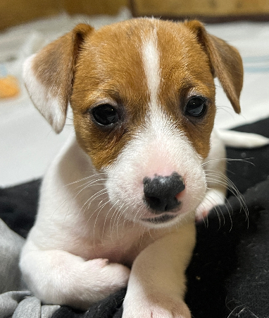 約生後2ヶ月の男の子。 よく飲み、よく寝て、よく遊んで、すくすく成長しております。 トイレはちゃんとシーツでできています。 今のところ毛質はスムース、普通〜少しスラっとしたタイプの予想になります。 ほんの少し下の歯が上の歯よりも前に出ているアンダーになります。 生活に支障は無く、個性として考えて頂ければ幸いです。(成長と共に治ることもあります。) 第1回目のワクチン接種、健康診断とマイクロチップ装着を12月8日に行う予定ですので、12月22日頃よりお迎えして頂けます。 生涯無料でトレーニング等サポートをさせて頂いております。 親睦会等、交流も大切にしております。 以前に非常識なご見学が続いてしまった為、子犬ちゃんの安全や負担軽減を考え、ご見学の制限をさせて頂いております。 ご見学をご希望される場合、ジャックのお迎えの意思が固まっており、ご予約金をお振り込み頂いた、またはご見学当日にお持ち頂いた方のみとさせて頂いております。 ご見学はお一人に絞らずにご予約が入っていない子達でしたら皆一緒にご見学頂けます。 どうしてもフィーリングが合わない場合はご予約金を未掲載の子や今後の出産に繰り越して頂けます。 ご予約を迷われている方は直接触れ合うことはできませんが、子犬ちゃんの様子を見ながらお話しができますZOOMによるオンライン見学等も対応させて頂いております。 わんちゃんやジャックラッセルテリアをお迎えされるか迷われている方はお電話にてお話しさせて頂きます。 対面販売による説明が義務づけられていますので、 お迎えは必ずお越し頂くことになりますが、子犬ちゃんのご予約はご見学されなくても承ります。 動画や写真、お電話でのお話しのご希望は遠慮なく、おっしゃってください。 ご不明な点やご質問等ございましたら、いつでもご連絡ください。 こちらの都合で申し訳ありませんが、ご理解、ご了承頂ければ幸いです。 よろしくお願い致します。