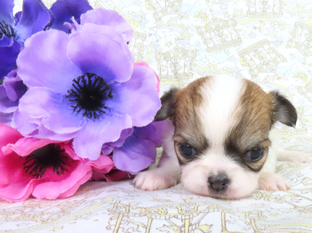 父 ジョンJKCチャンピオン 母 コーラ アウトラインブリード 成長時の予想体重は3~4.キロ 1/25現在の体重は1.695kgです。 子犬と親犬はブリーダー歴30数年、40数年の経験者と動物看護士などが中心に365日、注意深く、丁寧に観察してお世話をしております。 子犬ちゃんは人間同様、個人差がありますので、子犬ちゃんのお世話の仕方、お食事あげ方はご見学時、お迎え時などに担当のスタッフより詳しくお伝えいたしますのでなんでもご遠慮なくご相談ください。 JKCの全犬種審査員資格者と単犬種パピヨン審査員資格者が在舎しておりますので、パピヨンのスタンダードを熟知しております。 当犬舎はパピヨン一筋50年を超える日本で一番歴史のあるパピヨン専門犬舎です。 犬舎号と登録は1970.10/19です。 日本中の国産のパピヨンで当犬舎の血統が入っていない犬は存在しません。 血統書発行団体JKCより下記表彰を受けております。 JKC特別繁殖奨励賞第1位受賞 犬舎 JKCパピヨン犬種表彰受賞 犬舎 ご見学は大歓迎ですのでどうぞご連絡の上、おいでください。365日年中無休です。 2013年9月1日より「動物の愛護と管理に関する法律」の改正によって、「生体販売時の現物確認・対面販売」が義務規定となりましたので、最低一度は直接犬舎までご来舎いただかなくてはなりません。従いまして今までのようにネットで写真、動画をご覧になっただけではご購入ができなくなりました。これはすべてのブリーダー・ペットショップも例外がありませんので、ご理解、ご協力のほど御願い申し上げます。 手続きに時間がかるため海外への輸出はいたしません。 スタッフの取得資格 (社)JKC 全犬種審査員2名(社)JKC 単犬種パピヨン審査員1名 (国) 動物看護師統一認定機構 愛玩動物看護師国家資格取得(社)JKC スチュアート1名(社)JKC A級ハンドラー1名 (社)JKC C級ハンドラー1名(社)日本愛玩動物協会 愛玩動物飼養管理士2級3名 動物の愛護及び管理に関する法律による動物取扱責任者2名