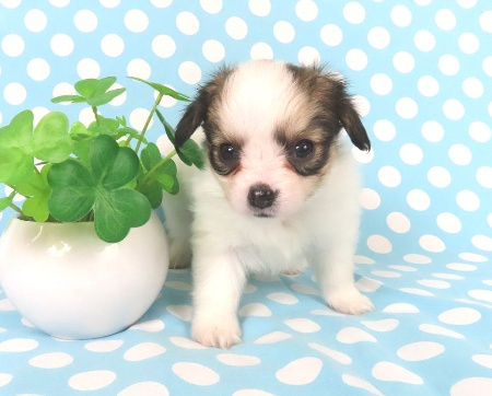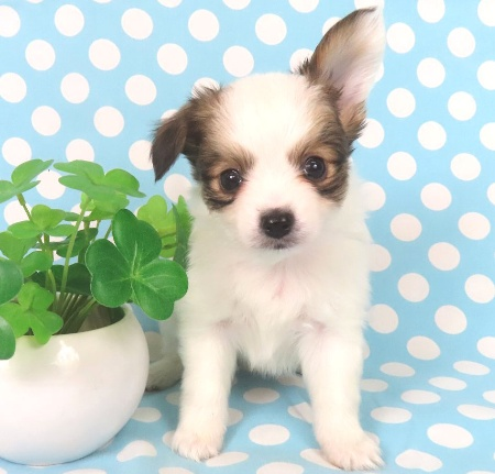 ※体重などの情報は後日掲載いたします。 成長時の予想体重は3~4.キロ 1/27現在の体重は1.6kgです。 子犬と親犬はブリーダー歴30数年、40数年の経験者と動物看護士などが中心に365日、注意深く、丁寧に観察してお世話をしております。 子犬ちゃんは人間同様、個人差がありますので、子犬ちゃんのお世話の仕方、お食事あげ方はご見学時、お迎え時などに担当のスタッフより詳しくお伝えいたしますのでなんでもご遠慮なくご相談ください。 JKCの全犬種審査員資格者と単犬種パピヨン審査員資格者が在舎しておりますので、パピヨンのスタンダードを熟知しております。 当犬舎はパピヨン一筋50年を超える日本で一番歴史のあるパピヨン専門犬舎です。 犬舎号と登録は1970.10/19です。 日本中の国産のパピヨンで当犬舎の血統が入っていない犬は存在しません。 血統書発行団体JKCより下記表彰を受けております。 JKC特別繁殖奨励賞第1位受賞 犬舎 JKCパピヨン犬種表彰受賞 犬舎 ご見学は大歓迎ですのでどうぞご連絡の上、おいでください。365日年中無休です。 2013年9月1日より「動物の愛護と管理に関する法律」の改正によって、「生体販売時の現物確認・対面販売」が義務規定となりましたので、最低一度は直接犬舎までご来舎いただかなくてはなりません。従いまして今までのようにネットで写真、動画をご覧になっただけではご購入ができなくなりました。これはすべてのブリーダー・ペットショップも例外がありませんので、ご理解、ご協力のほど御願い申し上げます。 手続きに時間がかるため海外への輸出はいたしません。 スタッフの取得資格 (社)JKC 全犬種審査員2名(社)JKC 単犬種パピヨン審査員1名 (国) 動物看護師統一認定機構 愛玩動物看護師国家資格取得(社)JKC スチュアート1名(社)JKC A級ハンドラー1名 (社)JKC C級ハンドラー1名(社)日本愛玩動物協会 愛玩動物飼養管理士2級3名 動物の愛護及び管理に関する法律による動物取扱責任者2名