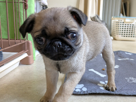 ワクチンを済ませて 子犬の状態を見てからになります。 60日前後です。 |
