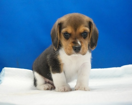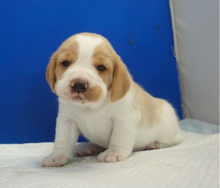 父犬ブラック、ホワイト&タン、母犬ハウンドカラーから生まれたハウンドカラー の男の子です。 現在体重2000gです。 顔の引き締まったとても男の子らしい顔になってきました。 とにかくよく動く男の子でいつも動いています。 目目がクリクリでとっても可愛い男の子です。 この子は頑固ちゃんではなくフレンドリーで 活発な男の子です。 食欲もあり順調に成長しています。 見学はいつでもできますのでお問い合わせください。