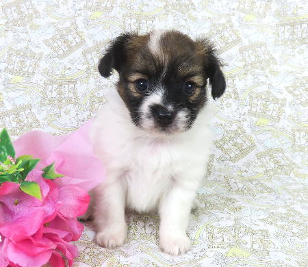 ※体重などの情報は後日掲載いたします。 1/7現在の体重は0.45kgです。 子犬と親犬はブリーダー歴30数年、40数年の経験者と動物看護士などが中心に365日、注意深く、丁寧に観察してお世話をしております。 子犬ちゃんは人間同様、個人差がありますので、子犬ちゃんのお世話の仕方、お食事あげ方はご見学時、お迎え時などに担当のスタッフより詳しくお伝えいたしますのでなんでもご遠慮なくご相談ください。 JKCの全犬種審査員資格者と単犬種パピヨン審査員資格者が在舎しておりますので、パピヨンのスタンダードを熟知しております。 当犬舎はパピヨン一筋50年を超える日本で一番歴史のあるパピヨン専門犬舎です。 犬舎号と登録は1970.10/19です。 日本中の国産のパピヨンで当犬舎の血統が入っていない犬は存在しません。 血統書発行団体JKCより下記表彰を受けております。 JKC特別繁殖奨励賞第1位受賞 犬舎 JKCパピヨン犬種表彰受賞 犬舎 ご見学は大歓迎ですのでどうぞご連絡の上、おいでください。365日年中無休です。 2013年9月1日より「動物の愛護と管理に関する法律」の改正によって、「生体販売時の現物確認・対面販売」が義務規定となりましたので、最低一度は直接犬舎までご来舎いただかなくてはなりません。従いまして今までのようにネットで写真、動画をご覧になっただけではご購入ができなくなりました。これはすべてのブリーダー・ペットショップも例外がありませんので、ご理解、ご協力のほど御願い申し上げます。 手続きに時間がかるため海外への輸出はいたしません。 スタッフの取得資格 (社)JKC 全犬種審査員2名(社)JKC 単犬種パピヨン審査員1名 (国) 動物看護師統一認定機構 愛玩動物看護師国家資格取得(社)JKC スチュアート1名(社)JKC A級ハンドラー1名 (社)JKC C級ハンドラー1名(社)日本愛玩動物協会 愛玩動物飼養管理士2級3名 動物の愛護及び管理に関する法律による動物取扱責任者2名