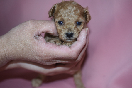 12月にトイプードルの赤ちゃんが3匹 男の子2匹、女の子1匹が産まれました✨️ 男の子は150gと140gの出生体重 女の子は94gと小さな女の子です🐶 ママの愛情をたくさんもらってスクスク育っています。 パパは約2キロ ママは約3.5キロ パパは小さくタイニーサイズです。 ママは足が短い可愛い短足ちゃんでドワーフ体型の2人とも色はアプリコットになります。 子供達は、女の子だけレッドに近い色になります。 5月に生まれた子達は新しい飼い主様の元で元気に沢山愛情を貰っています! トイレもほぼできる状態でのお迎えになりました✨️ とても甘えん坊な子達で飼い主様の方々にもお喜び頂いています♡♡ ぜひお問い合わせ下さい✨ 12/29……目が開きました✨️