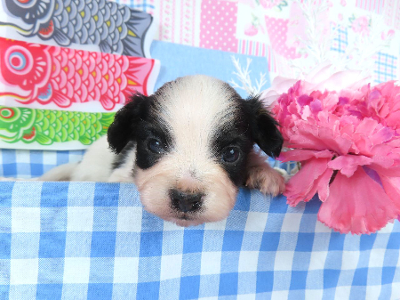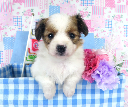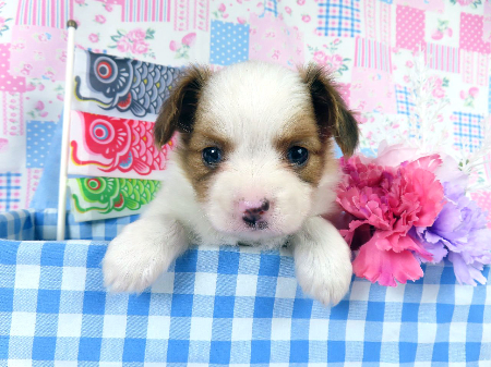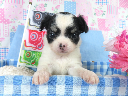 ※体重などの情報は後日掲載いたします。 3/4現在の体重は0.795kgです。 モレラがありますが成長とともに消える可能性があるため、特に欠点とは考えておりません。 子犬と親犬はブリーダー歴30数年、40数年の経験者と動物看護士などが中心に365日、注意深く、丁寧に観察してお世話をしております。 子犬ちゃんは人間同様、個人差がありますので、子犬ちゃんのお世話の仕方、お食事あげ方はご見学時、お迎え時などに担当のスタッフより詳しくお伝えいたしますのでなんでもご遠慮なくご相談ください。 JKCの全犬種審査員資格者と単犬種パピヨン審査員資格者が在舎しておりますので、パピヨンのスタンダードを熟知しております。 当犬舎はパピヨン一筋50年を超える日本で一番歴史のあるパピヨン専門犬舎です。 犬舎号と登録は1970.10/19です。 日本中の国産のパピヨンで当犬舎の血統が入っていない犬は存在しません。 血統書発行団体JKCより下記表彰を受けております。 JKC特別繁殖奨励賞第1位受賞 犬舎 JKCパピヨン犬種表彰受賞 犬舎 ご見学は大歓迎ですのでどうぞご連絡の上、おいでください。365日年中無休です。 2013年9月1日より「動物の愛護と管理に関する法律」の改正によって、「生体販売時の現物確認・対面販売」が義務規定となりましたので、最低一度は直接犬舎までご来舎いただかなくてはなりません。従いまして今までのようにネットで写真、動画をご覧になっただけではご購入ができなくなりました。これはすべてのブリーダー・ペットショップも例外がありませんので、ご理解、ご協力のほど御願い申し上げます。 手続きに時間がかるため海外への輸出はいたしません。 スタッフの取得資格 (社)JKC 全犬種審査員2名(社)JKC 単犬種パピヨン審査員1名 (国) 動物看護師統一認定機構 愛玩動物看護師国家資格取得(社)JKC スチュアート1名(社)JKC A級ハンドラー1名 (社)JKC C級ハンドラー1名(社)日本愛玩動物協会 愛玩動物飼養管理士2級3名 動物の愛護及び管理に関する法律による動物取扱責任者2名