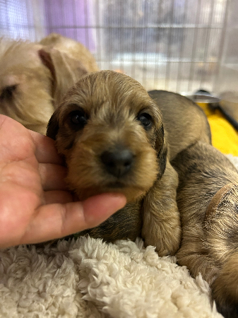 ミニチュアワイヤータックス レッドの男の子 小ぶりでおとなしめな子 兄弟に負けずに頑張って成長しています お母さん犬 4.9kg レッド (ワイヤー) お父さん犬 4kg レッド (ワイヤー)