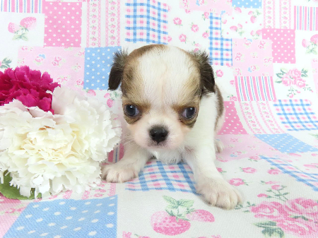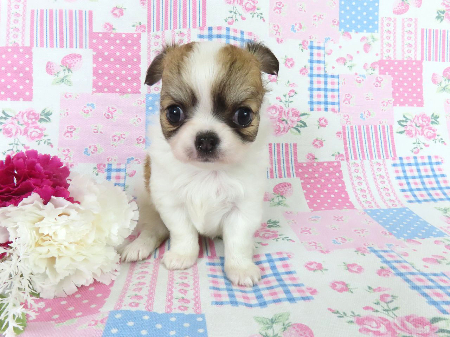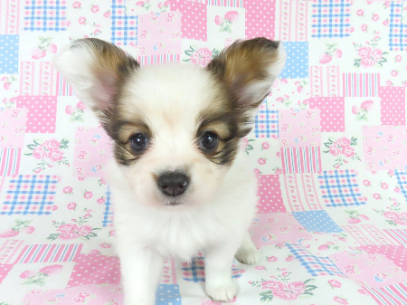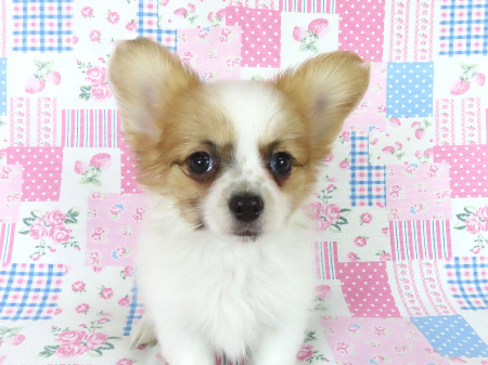 ※体重などの情報は後日掲載いたします。 2/3現在の体重は0.61kgです。 鼠経ヘルニアがありますが成長とともに消える可能性があるため、特に欠点とは考えておりません。 でべそがあります。 子犬と親犬はブリーダー歴30数年、40数年の経験者と動物看護士などが中心に365日、注意深く、丁寧に観察してお世話をしております。 子犬ちゃんは人間同様、個人差がありますので、子犬ちゃんのお世話の仕方、お食事あげ方はご見学時、お迎え時などに担当のスタッフより詳しくお伝えいたしますのでなんでもご遠慮なくご相談ください。 JKCの全犬種審査員資格者と単犬種パピヨン審査員資格者が在舎しておりますので、パピヨンのスタンダードを熟知しております。 当犬舎はパピヨン一筋50年を超える日本で一番歴史のあるパピヨン専門犬舎です。 犬舎号と登録は1970.10/19です。 日本中の国産のパピヨンで当犬舎の血統が入っていない犬は存在しません。 血統書発行団体JKCより下記表彰を受けております。 JKC特別繁殖奨励賞第1位受賞 犬舎 JKCパピヨン犬種表彰受賞 犬舎 ご見学は大歓迎ですのでどうぞご連絡の上、おいでください。365日年中無休です。 2013年9月1日より「動物の愛護と管理に関する法律」の改正によって、「生体販売時の現物確認・対面販売」が義務規定となりましたので、最低一度は直接犬舎までご来舎いただかなくてはなりません。従いまして今までのようにネットで写真、動画をご覧になっただけではご購入ができなくなりました。これはすべてのブリーダー・ペットショップも例外がありませんので、ご理解、ご協力のほど御願い申し上げます。 手続きに時間がかるため海外への輸出はいたしません。 スタッフの取得資格 (社)JKC 全犬種審査員2名(社)JKC 単犬種パピヨン審査員1名 (国) 動物看護師統一認定機構 愛玩動物看護師国家資格取得(社)JKC スチュアート1名(社)JKC A級ハンドラー1名 (社)JKC C級ハンドラー1名(社)日本愛玩動物協会 愛玩動物飼養管理士2級3名 動物の愛護及び管理に関する法律による動物取扱責任者2名