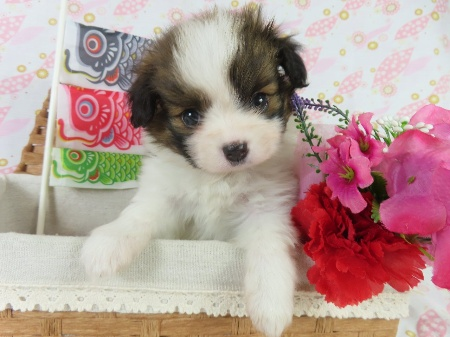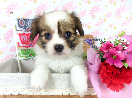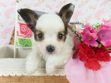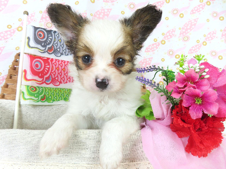 ※体重などの情報は後日掲載いたします。 4/8現在の体重は0.965kgです。 子犬と親犬はブリーダー歴30数年、40数年の経験者と動物看護士などが中心に365日、注意深く、丁寧に観察してお世話をしております。 子犬ちゃんは人間同様、個人差がありますので、子犬ちゃんのお世話の仕方、お食事あげ方はご見学時、お迎え時などに担当のスタッフより詳しくお伝えいたしますのでなんでもご遠慮なくご相談ください。 JKCの全犬種審査員資格者と単犬種パピヨン審査員資格者が在舎しておりますので、パピヨンのスタンダードを熟知しております。 当犬舎はパピヨン一筋50年を超える日本で一番歴史のあるパピヨン専門犬舎です。 犬舎号と登録は1970.10/19です。 日本中の国産のパピヨンで当犬舎の血統が入っていない犬は存在しません。 血統書発行団体JKCより下記表彰を受けております。 JKC特別繁殖奨励賞第1位受賞 犬舎 JKCパピヨン犬種表彰受賞 犬舎 ご見学は大歓迎ですのでどうぞご連絡の上、おいでください。365日年中無休です。 2013年9月1日より「動物の愛護と管理に関する法律」の改正によって、「生体販売時の現物確認・対面販売」が義務規定となりましたので、最低一度は直接犬舎までご来舎いただかなくてはなりません。従いまして今までのようにネットで写真、動画をご覧になっただけではご購入ができなくなりました。これはすべてのブリーダー・ペットショップも例外がありませんので、ご理解、ご協力のほど御願い申し上げます。 手続きに時間がかるため海外への輸出はいたしません。 スタッフの取得資格 (社)JKC 全犬種審査員2名(社)JKC 単犬種パピヨン審査員1名 (国) 動物看護師統一認定機構 愛玩動物看護師国家資格取得(社)JKC スチュアート1名(社)JKC A級ハンドラー1名 (社)JKC C級ハンドラー1名(社)日本愛玩動物協会 愛玩動物飼養管理士2級3名 動物の愛護及び管理に関する法律による動物取扱責任者2名