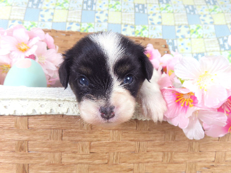 ※体重などの情報は後日掲載いたします。 4/1現在の体重は0.575kgです。 子犬と親犬はブリーダー歴30数年、40数年の経験者と動物看護士などが中心に365日、注意深く、丁寧に観察してお世話をしております。 子犬ちゃんは人間同様、個人差がありますので、子犬ちゃんのお世話の仕方、お食事あげ方はご見学時、お迎え時などに担当のスタッフより詳しくお伝えいたしますのでなんでもご遠慮なくご相談ください。 JKCの全犬種審査員資格者と単犬種パピヨン審査員資格者が在舎しておりますので、パピヨンのスタンダードを熟知しております。 当犬舎はパピヨン一筋50年を超える日本で一番歴史のあるパピヨン専門犬舎です。 犬舎号と登録は1970.10/19です。 日本中の国産のパピヨンで当犬舎の血統が入っていない犬は存在しません。 血統書発行団体JKCより下記表彰を受けております。 JKC特別繁殖奨励賞第1位受賞 犬舎 JKCパピヨン犬種表彰受賞 犬舎 ご見学は大歓迎ですのでどうぞご連絡の上、おいでください。365日年中無休です。 2013年9月1日より「動物の愛護と管理に関する法律」の改正によって、「生体販売時の現物確認・対面販売」が義務規定となりましたので、最低一度は直接犬舎までご来舎いただかなくてはなりません。従いまして今までのようにネットで写真、動画をご覧になっただけではご購入ができなくなりました。これはすべてのブリーダー・ペットショップも例外がありませんので、ご理解、ご協力のほど御願い申し上げます。 手続きに時間がかるため海外への輸出はいたしません。 スタッフの取得資格 (社)JKC 全犬種審査員2名(社)JKC 単犬種パピヨン審査員1名 (国) 動物看護師統一認定機構 愛玩動物看護師国家資格取得(社)JKC スチュアート1名(社)JKC A級ハンドラー1名 (社)JKC C級ハンドラー1名(社)日本愛玩動物協会 愛玩動物飼養管理士2級3名 動物の愛護及び管理に関する法律による動物取扱責任者2名