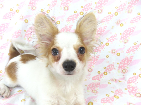 ※体重などの情報は後日掲載いたします。 4/11現在の体重は0.61kgです。 子犬と親犬はブリーダー歴30数年、40数年の経験者と動物看護士などが中心に365日、注意深く、丁寧に観察してお世話をしております。 子犬ちゃんは人間同様、個人差がありますので、子犬ちゃんのお世話の仕方、お食事あげ方はご見学時、お迎え時などに担当のスタッフより詳しくお伝えいたしますのでなんでもご遠慮なくご相談ください。 JKCの全犬種審査員資格者と単犬種パピヨン審査員資格者が在舎しておりますので、パピヨンのスタンダードを熟知しております。 当犬舎はパピヨン一筋50年を超える日本で一番歴史のあるパピヨン専門犬舎です。 犬舎号と登録は1970.10/19です。 日本中の国産のパピヨンで当犬舎の血統が入っていない犬は存在しません。 血統書発行団体JKCより下記表彰を受けております。 JKC特別繁殖奨励賞第1位受賞 犬舎 JKCパピヨン犬種表彰受賞 犬舎 ご見学は大歓迎ですのでどうぞご連絡の上、おいでください。365日年中無休です。 2013年9月1日より「動物の愛護と管理に関する法律」の改正によって、「生体販売時の現物確認・対面販売」が義務規定となりましたので、最低一度は直接犬舎までご来舎いただかなくてはなりません。従いまして今までのようにネットで写真、動画をご覧になっただけではご購入ができなくなりました。これはすべてのブリーダー・ペットショップも例外がありませんので、ご理解、ご協力のほど御願い申し上げます。 手続きに時間がかるため海外への輸出はいたしません。 スタッフの取得資格 (社)JKC 全犬種審査員2名(社)JKC 単犬種パピヨン審査員1名 (国) 動物看護師統一認定機構 愛玩動物看護師国家資格取得(社)JKC スチュアート1名(社)JKC A級ハンドラー1名 (社)JKC C級ハンドラー1名(社)日本愛玩動物協会 愛玩動物飼養管理士2級3名 動物の愛護及び管理に関する法律による動物取扱責任者2名