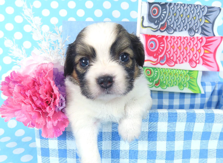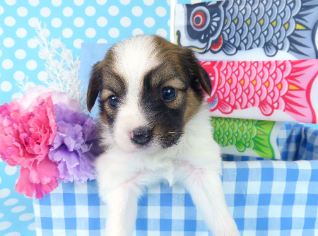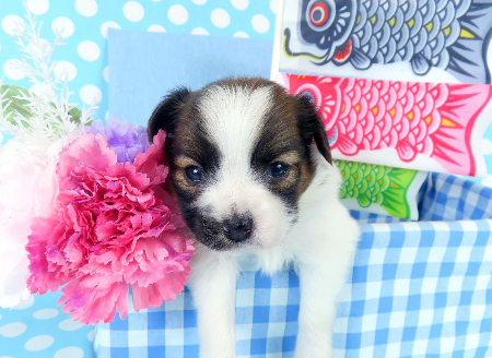※体重などの情報は後日掲載いたします。 4/14現在の体重は0.54kgです。 子犬と親犬はブリーダー歴30数年、40数年の経験者と動物看護士などが中心に365日、注意深く、丁寧に観察してお世話をしております。 子犬ちゃんは人間同様、個人差がありますので、子犬ちゃんのお世話の仕方、お食事あげ方はご見学時、お迎え時などに担当のスタッフより詳しくお伝えいたしますのでなんでもご遠慮なくご相談ください。 JKCの全犬種審査員資格者と単犬種パピヨン審査員資格者が在舎しておりますので、パピヨンのスタンダードを熟知しております。 当犬舎はパピヨン一筋50年を超える日本で一番歴史のあるパピヨン専門犬舎です。 犬舎号と登録は1970.10/19です。 日本中の国産のパピヨンで当犬舎の血統が入っていない犬は存在しません。 血統書発行団体JKCより下記表彰を受けております。 JKC特別繁殖奨励賞第1位受賞 犬舎 JKCパピヨン犬種表彰受賞 犬舎 ご見学は大歓迎ですのでどうぞご連絡の上、おいでください。365日年中無休です。 2013年9月1日より「動物の愛護と管理に関する法律」の改正によって、「生体販売時の現物確認・対面販売」が義務規定となりましたので、最低一度は直接犬舎までご来舎いただかなくてはなりません。従いまして今までのようにネットで写真、動画をご覧になっただけではご購入ができなくなりました。これはすべてのブリーダー・ペットショップも例外がありませんので、ご理解、ご協力のほど御願い申し上げます。 手続きに時間がかるため海外への輸出はいたしません。 スタッフの取得資格 (社)JKC 全犬種審査員2名(社)JKC 単犬種パピヨン審査員1名 (国) 動物看護師統一認定機構 愛玩動物看護師国家資格取得(社)JKC スチュアート1名(社)JKC A級ハンドラー1名 (社)JKC C級ハンドラー1名(社)日本愛玩動物協会 愛玩動物飼養管理士2級3名 動物の愛護及び管理に関する法律による動物取扱責任者2名