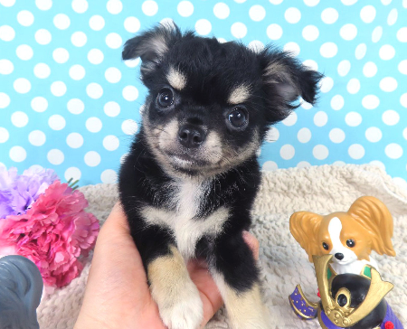 ※体重などの情報は後日掲載いたします。 4/14現在の体重は0.69kgです。 子犬と親犬はブリーダー歴30数年、40数年の経験者と動物看護士などが中心に365日、注意深く、丁寧に観察してお世話をしております。 子犬ちゃんは人間同様、個人差がありますので、子犬ちゃんのお世話の仕方、お食事あげ方はご見学時、お迎え時などに担当のスタッフより詳しくお伝えいたしますのでなんでもご遠慮なくご相談ください。 JKCの全犬種審査員資格者と単犬種パピヨン審査員資格者が在舎しておりますので、パピヨンのスタンダードを熟知しております。 当犬舎はパピヨン一筋50年を超える日本で一番歴史のあるパピヨン専門犬舎です。 犬舎号と登録は1970.10/19です。 日本中の国産のパピヨンで当犬舎の血統が入っていない犬は存在しません。 血統書発行団体JKCより下記表彰を受けております。 JKC特別繁殖奨励賞第1位受賞 犬舎 JKCパピヨン犬種表彰受賞 犬舎 ご見学は大歓迎ですのでどうぞご連絡の上、おいでください。365日年中無休です。 2013年9月1日より「動物の愛護と管理に関する法律」の改正によって、「生体販売時の現物確認・対面販売」が義務規定となりましたので、最低一度は直接犬舎までご来舎いただかなくてはなりません。従いまして今までのようにネットで写真、動画をご覧になっただけではご購入ができなくなりました。これはすべてのブリーダー・ペットショップも例外がありませんので、ご理解、ご協力のほど御願い申し上げます。 手続きに時間がかるため海外への輸出はいたしません。 スタッフの取得資格 (社)JKC 全犬種審査員2名(社)JKC 単犬種パピヨン審査員1名 (国) 動物看護師統一認定機構 愛玩動物看護師国家資格取得(社)JKC スチュアート1名(社)JKC A級ハンドラー1名 (社)JKC C級ハンドラー1名(社)日本愛玩動物協会 愛玩動物飼養管理士2級3名 動物の愛護及び管理に関する法律による動物取扱責任者2名