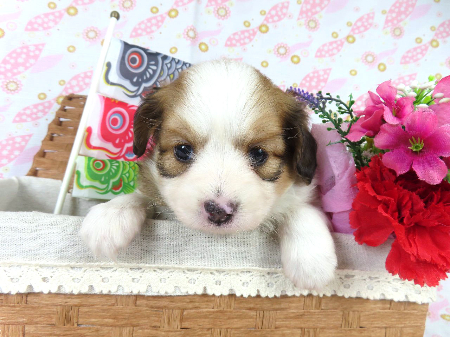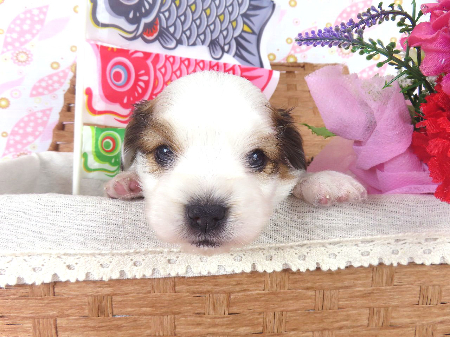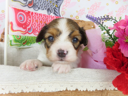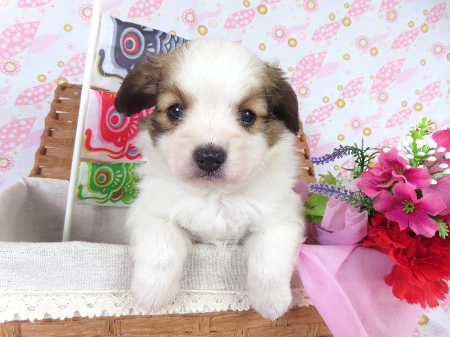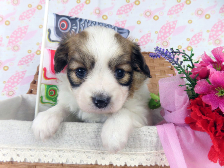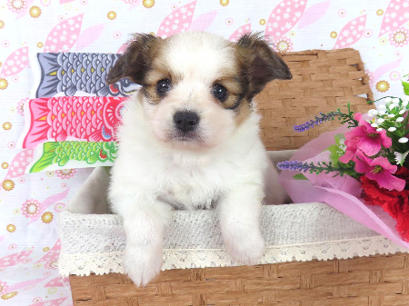 ※体重などの情報は後日掲載いたします。 4/25現在の体重は0.66kgです。 子犬と親犬はブリーダー歴30数年、40数年の経験者と動物看護士などが中心に365日、注意深く、丁寧に観察してお世話をしております。 子犬ちゃんは人間同様、個人差がありますので、子犬ちゃんのお世話の仕方、お食事あげ方はご見学時、お迎え時などに担当のスタッフより詳しくお伝えいたしますのでなんでもご遠慮なくご相談ください。 JKCの全犬種審査員資格者と単犬種パピヨン審査員資格者が在舎しておりますので、パピヨンのスタンダードを熟知しております。 当犬舎はパピヨン一筋50年を超える日本で一番歴史のあるパピヨン専門犬舎です。 犬舎号と登録は1970.10/19です。 日本中の国産のパピヨンで当犬舎の血統が入っていない犬は存在しません。 血統書発行団体JKCより下記表彰を受けております。 JKC特別繁殖奨励賞第1位受賞 犬舎 JKCパピヨン犬種表彰受賞 犬舎 ご見学は大歓迎ですのでどうぞご連絡の上、おいでください。365日年中無休です。 2013年9月1日より「動物の愛護と管理に関する法律」の改正によって、「生体販売時の現物確認・対面販売」が義務規定となりましたので、最低一度は直接犬舎までご来舎いただかなくてはなりません。従いまして今までのようにネットで写真、動画をご覧になっただけではご購入ができなくなりました。これはすべてのブリーダー・ペットショップも例外がありませんので、ご理解、ご協力のほど御願い申し上げます。 手続きに時間がかるため海外への輸出はいたしません。 スタッフの取得資格 (社)JKC 全犬種審査員2名(社)JKC 単犬種パピヨン審査員1名 (国) 動物看護師統一認定機構 愛玩動物看護師国家資格取得(社)JKC スチュアート1名(社)JKC A級ハンドラー1名 (社)JKC C級ハンドラー1名(社)日本愛玩動物協会 愛玩動物飼養管理士2級3名 動物の愛護及び管理に関する法律による動物取扱責任者2名