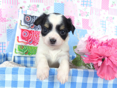 ※体重などの情報は後日掲載いたします。 4/28現在の体重は0.87kgです。 子犬と親犬はブリーダー歴30数年、40数年の経験者と動物看護士などが中心に365日、注意深く、丁寧に観察してお世話をしております。 子犬ちゃんは人間同様、個人差がありますので、子犬ちゃんのお世話の仕方、お食事あげ方はご見学時、お迎え時などに担当のスタッフより詳しくお伝えいたしますのでなんでもご遠慮なくご相談ください。 JKCの全犬種審査員資格者と単犬種パピヨン審査員資格者が在舎しておりますので、パピヨンのスタンダードを熟知しております。 当犬舎はパピヨン一筋50年を超える日本で一番歴史のあるパピヨン専門犬舎です。 犬舎号と登録は1970.10/19です。 日本中の国産のパピヨンで当犬舎の血統が入っていない犬は存在しません。 血統書発行団体JKCより下記表彰を受けております。 JKC特別繁殖奨励賞第1位受賞 犬舎 JKCパピヨン犬種表彰受賞 犬舎 ご見学は大歓迎ですのでどうぞご連絡の上、おいでください。365日年中無休です。 2013年9月1日より「動物の愛護と管理に関する法律」の改正によって、「生体販売時の現物確認・対面販売」が義務規定となりましたので、最低一度は直接犬舎までご来舎いただかなくてはなりません。従いまして今までのようにネットで写真、動画をご覧になっただけではご購入ができなくなりました。これはすべてのブリーダー・ペットショップも例外がありませんので、ご理解、ご協力のほど御願い申し上げます。 手続きに時間がかるため海外への輸出はいたしません。 スタッフの取得資格 (社)JKC 全犬種審査員2名(社)JKC 単犬種パピヨン審査員1名 (国) 動物看護師統一認定機構 愛玩動物看護師国家資格取得(社)JKC スチュアート1名(社)JKC A級ハンドラー1名 (社)JKC C級ハンドラー1名(社)日本愛玩動物協会 愛玩動物飼養管理士2級3名 動物の愛護及び管理に関する法律による動物取扱責任者2名