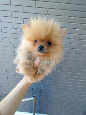 ポメラニアンはふわふわのダブルコート(上毛と密な下毛)をもち、首まわりに豊かな「ライオンのような襟」ができます。体型はコンパクトで頭部は丸く、目はアーモンド形で表情が豊かです。尾は高く巻いて背にのり、動きのあるシルエットを作ります。季節の換毛期には大量に抜けるため被毛ケアが重要です。