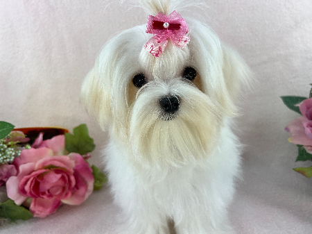 マルチーズのフルコートといえば、全身の毛を足元までたっぷりと伸ばしたスタイルです。マルチーズの艶やかなシルクのような被毛が存分に活かされ、とても美しく優雅です。