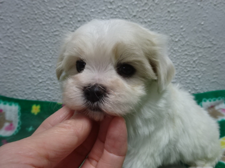 両親の垂れ耳を受け継ぎ、トイプードル寄りなら首や足がやや長くなり、マルチーズ寄りなら全体的に丸い見た目になります。成長とともに顔つきや毛色が変わることもミックス犬の楽しみですね。