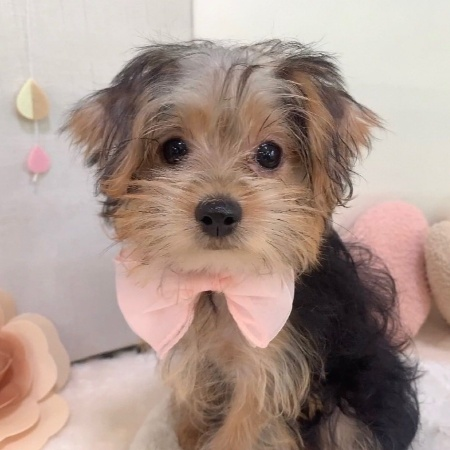 名前は発祥地とされるヨークシャー地方に由来しています。その後、美しい被毛と愛らしい外見が注目され、愛玩犬として改良が進みました。現在では世界中で親しまれ、ブリーダーによって大切に受け継がれている人気犬種のひとつです。