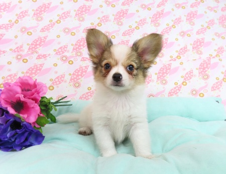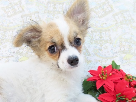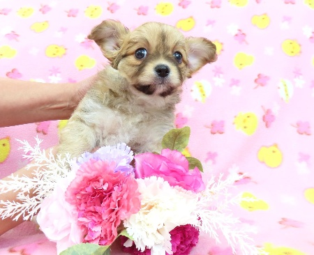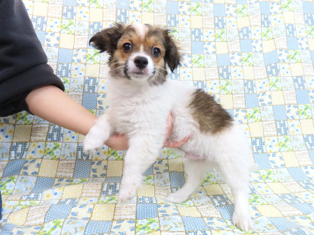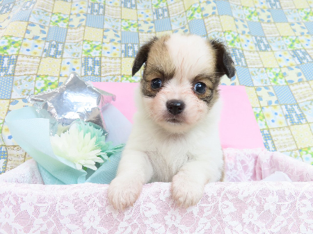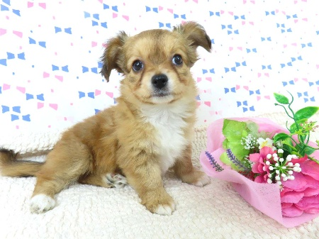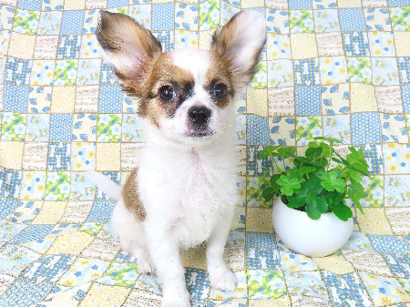 チワワ譲りのうるうるした大きな瞳と大きな耳、ポメラニアン譲りのストレートでふんわりした被毛が特徴的なポメチワ。両親とも換毛期があり抜け毛が多いため、毎日のブラッシングが必要です。