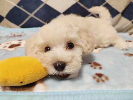甘えん坊のマルチーズと人懐っこいトイプードルを両親にもつマルプーは、温厚で愛情深く賢い子が多いといわれています。しつけがしやすく飼いやすいため大人気のミックス犬です。