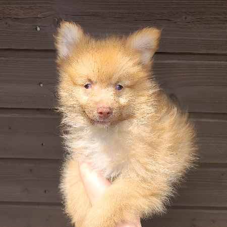 チワワ譲りのうるうるした大きな瞳と大きな耳、ポメラニアン譲りのストレートでふんわりした被毛が特徴的なポメチワ。両親とも換毛期があり抜け毛が多いため、毎日のブラッシングが必要です。